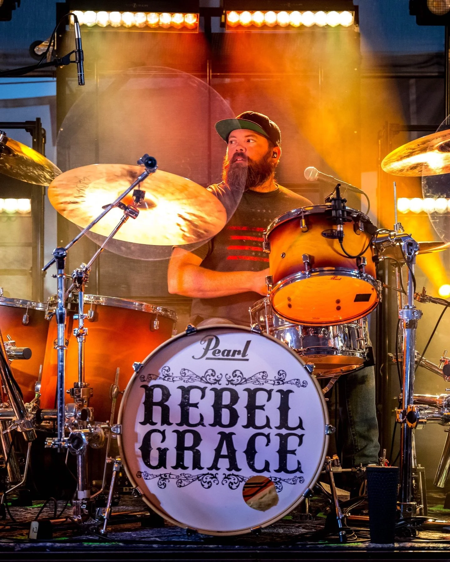 Brian has been a part of the music scene from a very early age. He was along for the ride with his father sitting in with bands at 5 years old playing polkas, rock, and country. Eventually Brian ended up getting into his own bands and has played locally with Geoff Landon, Chasin Mason, and Oil Can Harry just to name a few. He also spent time in Nashville playing Broadway as well as living out his dream touring the country. He now has joined Rebel Grace and is excited to be part of such an amazing group of musicians and people. Meet Brian; he is an OK drummer.